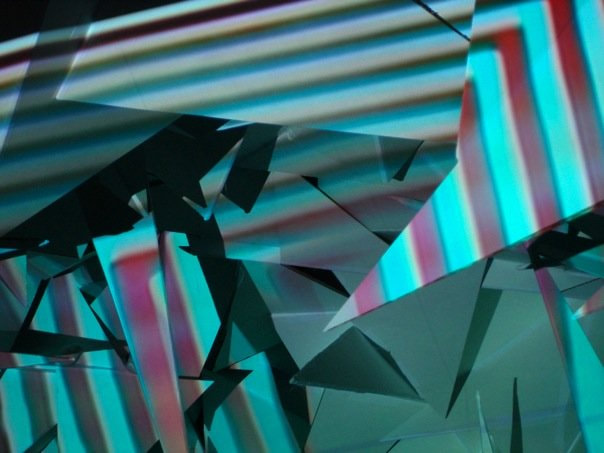 Projected imagery was mapped directly onto the structure, interacting with its surfaces and contours, while sound was played through the installation to create an immersive, unstable environment. Together, the materials formed a broken landscape — recognisable in its references to everyday spaces, but distorted, contorted and layered through repetition and disruption.
